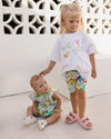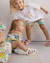 The Astrid Bike Shorts in Frutas Frescas are bursting with colour and energy, thanks to their juicy all-over fruit label print. Crafted from soft, stretchy fabric with a comfy elastic waistband, these shorts are perfect for cartwheels, chill days,. Pair with the Frutas Fescas, Felix tee for a fruity fresh set