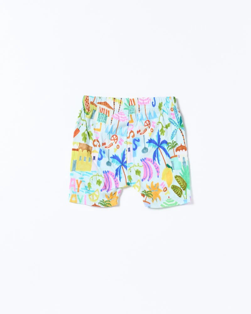 Yay for vacay! - The Astrid Bike Shorts in Vacay Yay bring all the holiday energy with their pastel print and fruity little icons. Designed for comfort and built for fun, these stretchy bike shorts are perfect for everything from scooter rides to beachside strolls. Pair with the matching Felix Tee or mix it up with your fave summer tops.