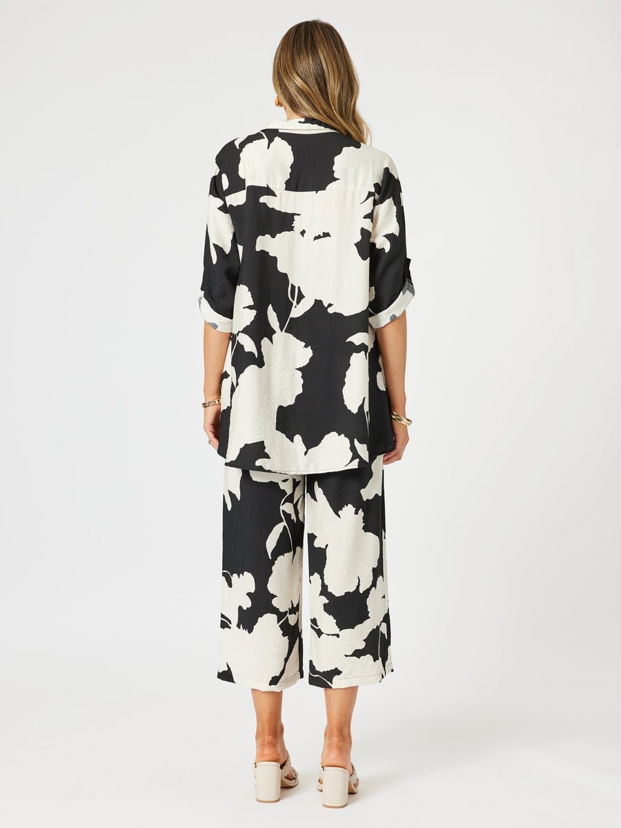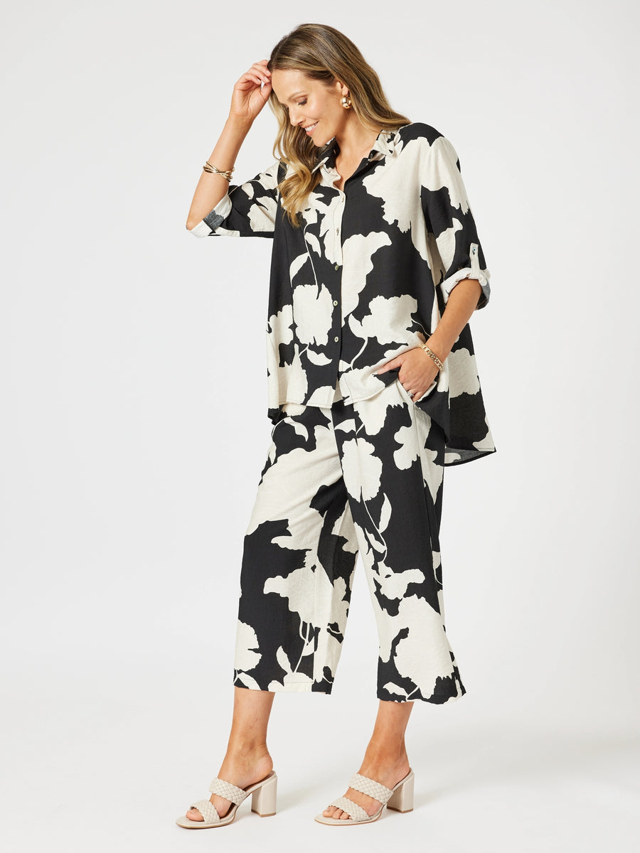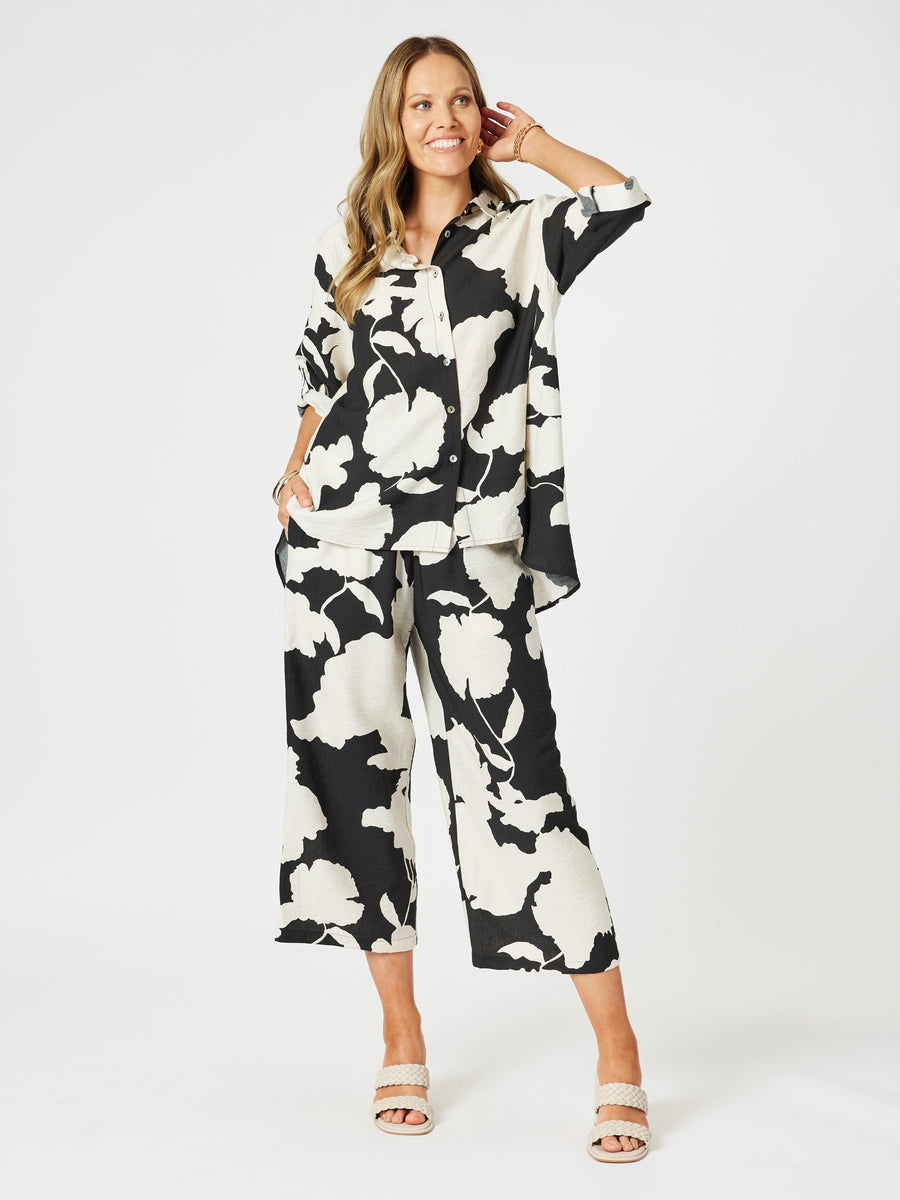 The art of soft dressing, made easy. The Barcelona floral pants features an elegant floral print in timeless black and natural tone - subtle, tonal, and endlessly wearable.