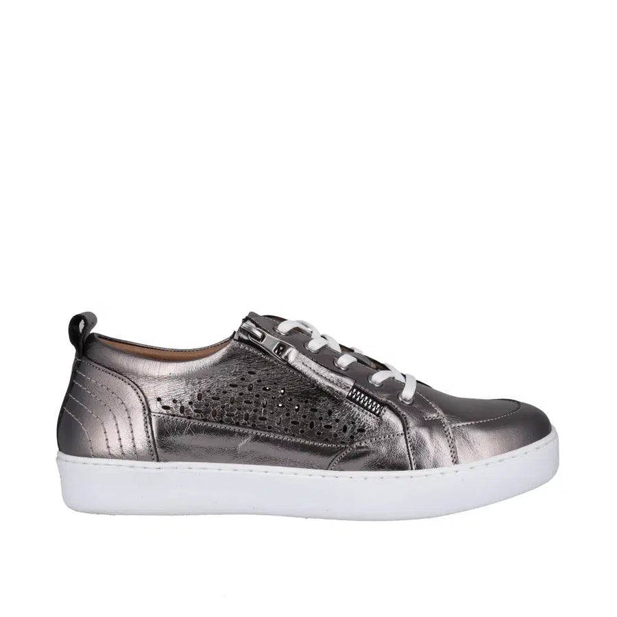 Step into style with the new Bella sneaker, featuring both zips and laces for a perfect fit, plus removable leather insoles for all-day comfort. The pull heel tab makes slipping on effortless, while the feature stitching on the heel adds a subtle, sleek detail. Available in four stunning colours, including the bold statement shade Pewter. Bella is your go-to sneaker for standout style and everyday ease.