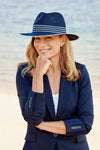 Dress it up or dress it down, the navy Flexibraid® Bonville with a 7cm brim & 9.5cm crown that showcases a band of white braided stripes around the crown. This hat can shift from corporate, to casual with ease. Handmade and manufactured in Australia this Flexibraid® hat is so travel-friendly, it will pack flat in a bag for convenience. The Comfy-fit adjustor ensures a perfect fit and when the wind comes up on the golf course, will keep the hat securely on your head. Handwash the Bonville with soapy water.