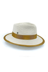 Glamour meets modern design in the Boston Fedora. In a crisp ivory hue, this elegant piece is elevated by a distinctive gold ribbon trim that gracefully accents both the crown and the edge of the brim - blending old-world charm with a fresh, fashion-forward twist. Crafted from resilient, travel-ready Flexibraid®, the Boston Fedora holds its shape while offering breathable comfort and effortless style. The built-in ComfyFit ensures a custom, secure fit, while the UPF50+ sun protection makes it as practical as it is polished. Whether you're strolling city streets or attending an outdoor affair, the Boston Fedora adds a touch of refined confidence to any ensemble.