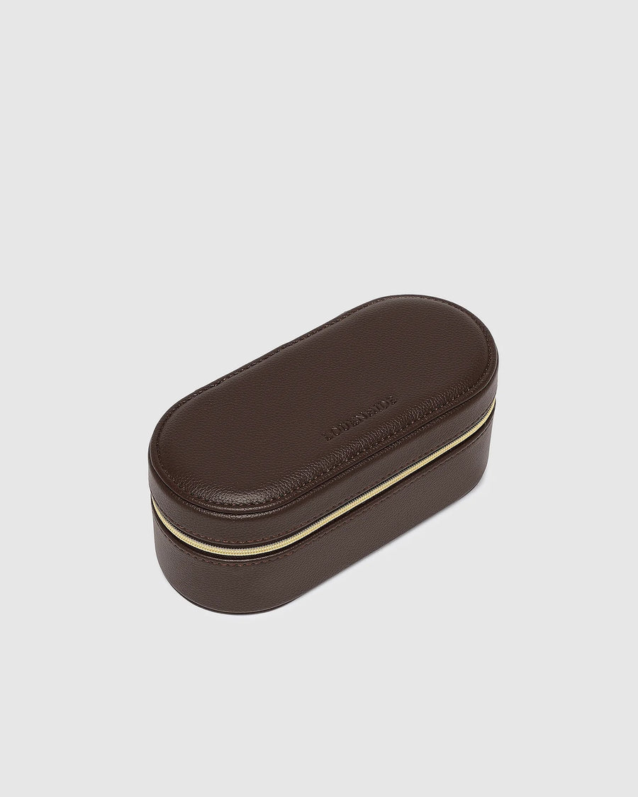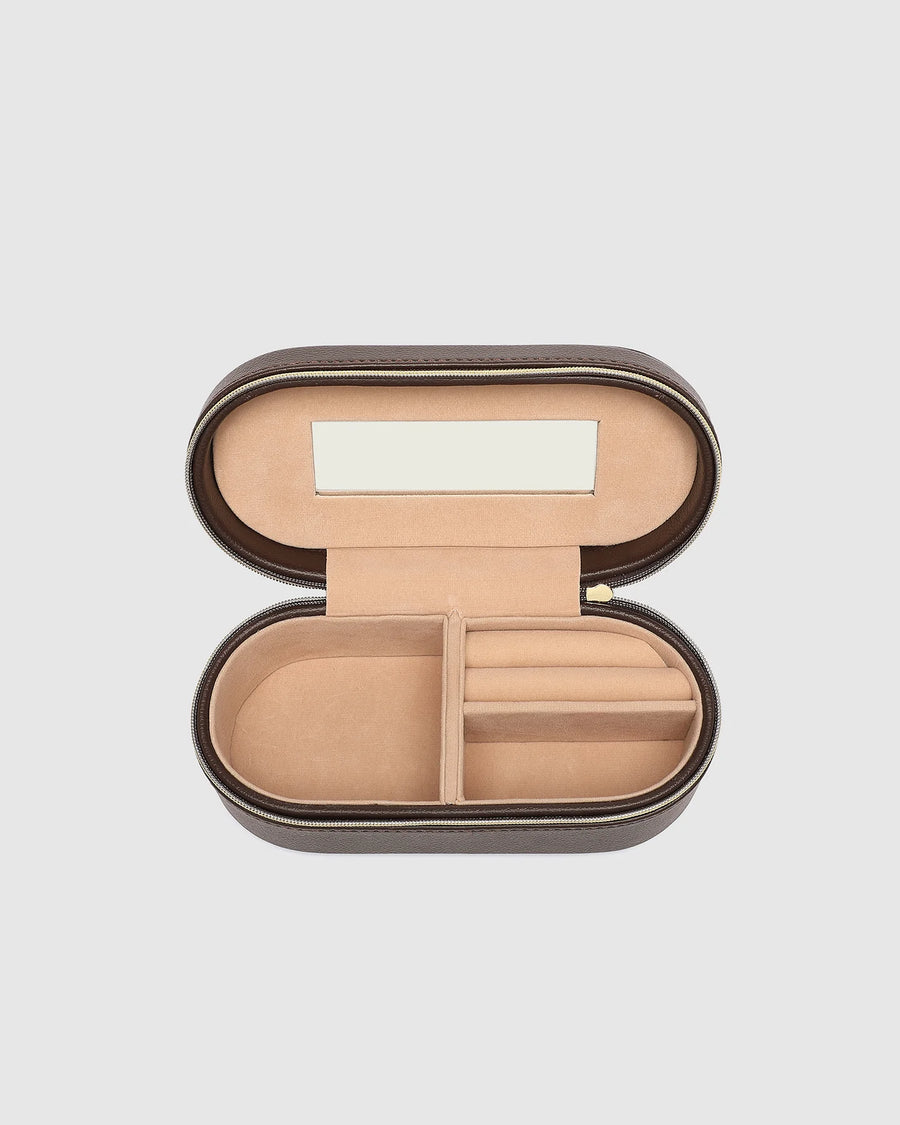 The Charlee Jewellery Box is a small jewellery box designed to bring style and structure to your everyday essentials. Perfectly petite yet beautifully functional, this mini jewellery box with a mirror and compartments is crafted from buttery soft vegan leather in a sleek, structured design. Inside, you’ll find a built-in mirror for on-the-go touch-ups, a dedicated ring holder, and two compartments to keep your favourite pieces secure and tangle-free. Whether you’re travelling light or organising your everyday treasures, The Charlee is the elegant little companion your jewellery deserves.