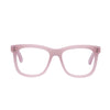 Blush, an earthy soft pink with a matt finish If you want bigger, this frame is for you! Unisex, unique design, high-quality and comfortable with; magnifying lenses, matt feel, fixed hinges, and available in fashion forward colours.