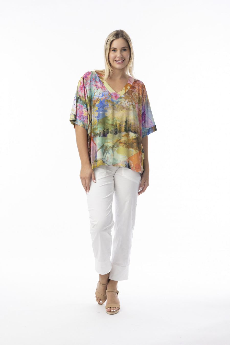 Step into standout style with the Digital Top Boxy, featuring a flattering V-neckline and short, loose sleeves for easy comfort and breezy movement. Designed with a relaxed, boxy silhouette, this top offers a modern, laid-back vibe perfect for everyday wear.Available in five distinct patterned styles, each piece brings a fresh pop of personality to your wardrobe — from graphic prints to abstract designs, there’s a look for every mood.