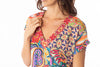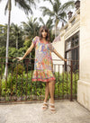 Be transported by the timeless traveler’s Francesca Short Sleeve Dress. Featuring flattering triangle panels at the bust, shirring at the back, maxi length skirt, and frill hem, this dress is a classic silhouette. The gorgeous colours and ornate kaleidoscope print makes this dress the perfect option for any occassion this summer!