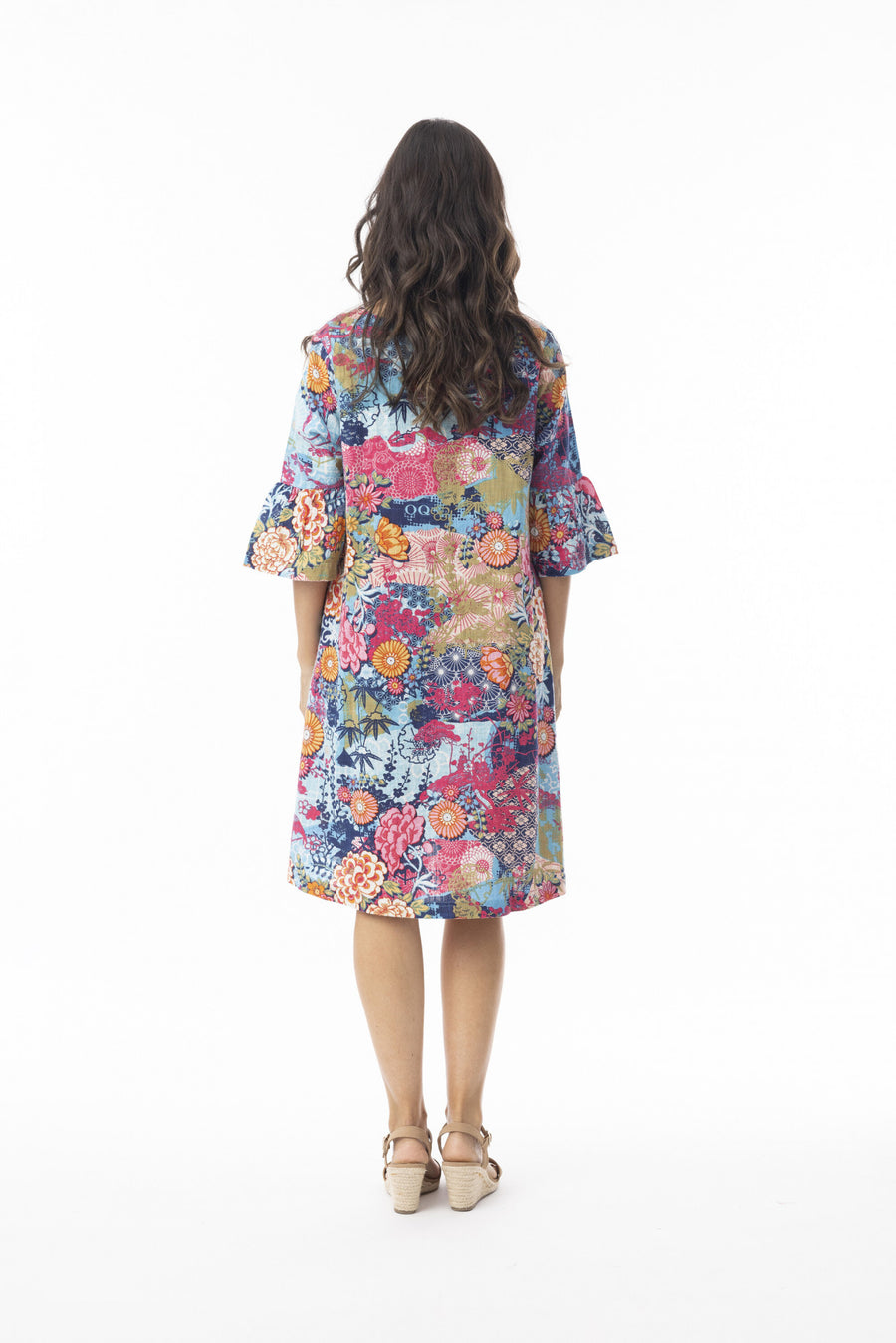 Turn heads with our stunning Ikebana contemporary dress. Featuring a relaxed fit and elbow-length sleeves, this dress showcases beautiful, colourful patterns creating a unique and eye-catching design. Perfect for any casual outing, it offers both style and comfort, ensuring you look effortlessly chic all day.