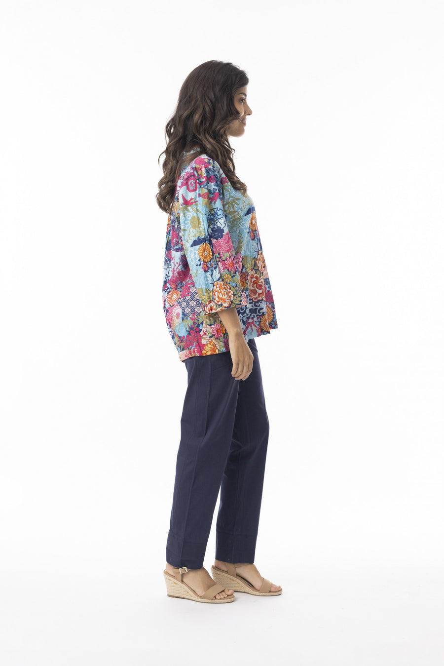 Step out in our stylish garment, the vibrant and fun Ikebana Frill Neckline Top. Designed with three-quarter sleeves, bold prints, and a flattering v-neckline, this top adds a playful touch to any outfit. Perfect for adding a pop of colour to your look, it's a must-have for your everyday wardrobe.