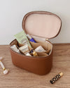 The Juliette Tan Vanity Case is the ultimate travel beauty case with a handle - designed to keep your cosmetics, skincare, and accessories beautifully organised, wherever the season takes you. Crafted from buttery soft vegan leather in a sleek, structured silhouette, she opens to reveal a removable insert with divider and three slip pockets, giving every item a dedicated place. Whether you're packing for a weekend away or curating your daily essentials, this versatile cosmetic case blends everyday functionality with elevated style. Finished with refined details and a practical top handle for effortless carrying, Juliette Tan is the perfect plus-one for beauty lovers on the move.