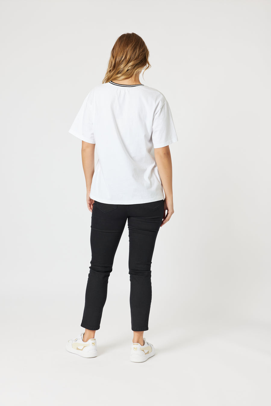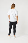 We love the boxier shape of this tee that makes is so comfortable to wear and easy to tuck and style, because it is made from 100% Super Soft Cotton.
