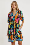 Fresh, flowy, and full of personality, the LulaLife Odette Tuck Dress is an easy everyday favourite with beautiful detail. Made from 100% viscose, it feels soft, lightweight, and perfect for warm days. The Nauru collar flowing into a V-neck and front tab button-through design give it a relaxed, polished look. Soft vertical tucks on the front and back bodice add gentle shaping, while the elbow-length sleeves, side pockets, and curved hem keep the fit effortless and comfortable. Finished in a striking Japanese-inspired digital print, this Australian-designed dress—made in India—offers vibrant, wearable style. Model is 5'8½” for reference.