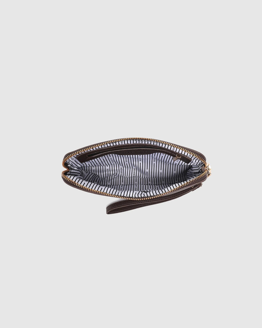 The Poppy Clutch is a timeless essential designed for effortless versatility. Made from buttery soft vegan leather and accented with light gold hardware, her slim silhouette transitions seamlessly from day to night. Keep your must-haves close with an internal zip and slip pocket, while the back pocket offers quick access on the go. Finished with a secure top zip closure and detachable wristlet, Poppy can be styled as a sleek wallet tucked inside your tote or carried on her own as an elegant clutch. Simple, functional, and refined - she’s the piece you’ll reach for season after season.