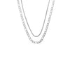 Silver - The Dual Necklace is crafted from high-polish stainless steel and features two contrasting chains - a medium-weight Figaro chain paired with a finer rounded box chain - for a bold yet refined layered look.