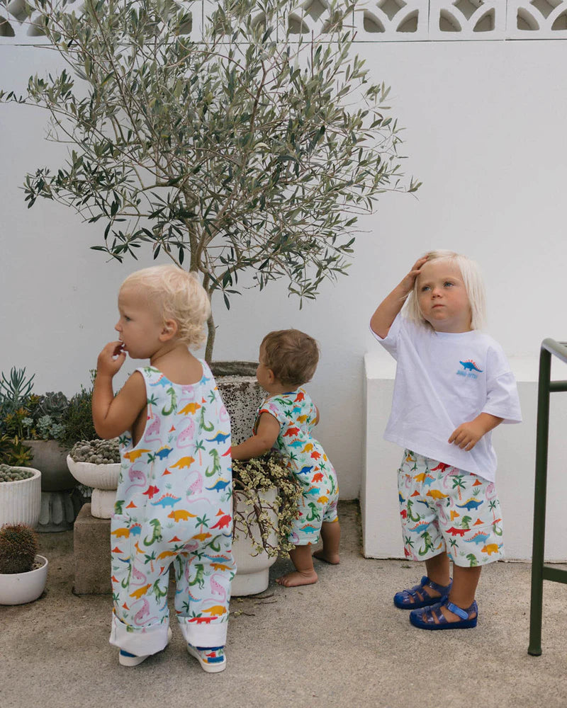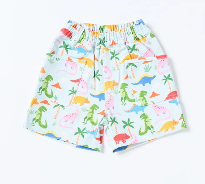 Rainbow Dino - Get ready to stomp, chomp and play all day in the Remy Short in Dino! Featuring a playful all-over dinosaur print in bright, cheerful colours, these shorts are made from soft cotton with a comfy elastic waistband and roomy patch pockets—perfect for storing tiny treasures or prehistoric finds.