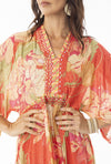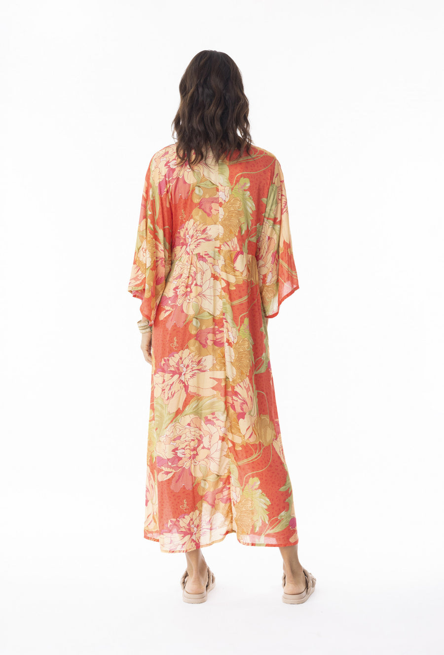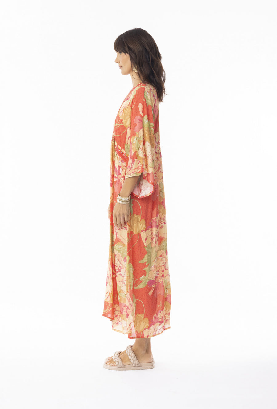 Step into effortless beauty with the Rosa Midi V Wide Sleeve Dress, where soft lines and flowing fabric create a look that’s both graceful and distinctive. The high waist flatters the silhouette, while the full-length skirt and sweeping wide sleeves offer fluid movement with every step. A delicately beaded neckline adds a hint of artistry, complemented by the warm orange rose tones that evoke the romance of golden hour. Made from 100% rayon, this dress is designed for those who appreciate relaxed sophistication with a touch of wanderlust.
