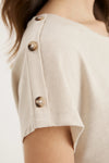 An elevated take on the everyday tee, the Tidal Tee is crafted from a soft linen-cotton blend that feels naturally breathable and drapes beautifully on the body. The relaxed fit and roomy short sleeves create an easy, flowing silhouette that’s perfect for warm days, while the decorative button accents along the shoulders add a subtle point of difference. Designed for effortless styling, it’s a versatile piece that pairs as easily with linen pants as it does with denim - a refined essential for a considered summer wardrobe.r