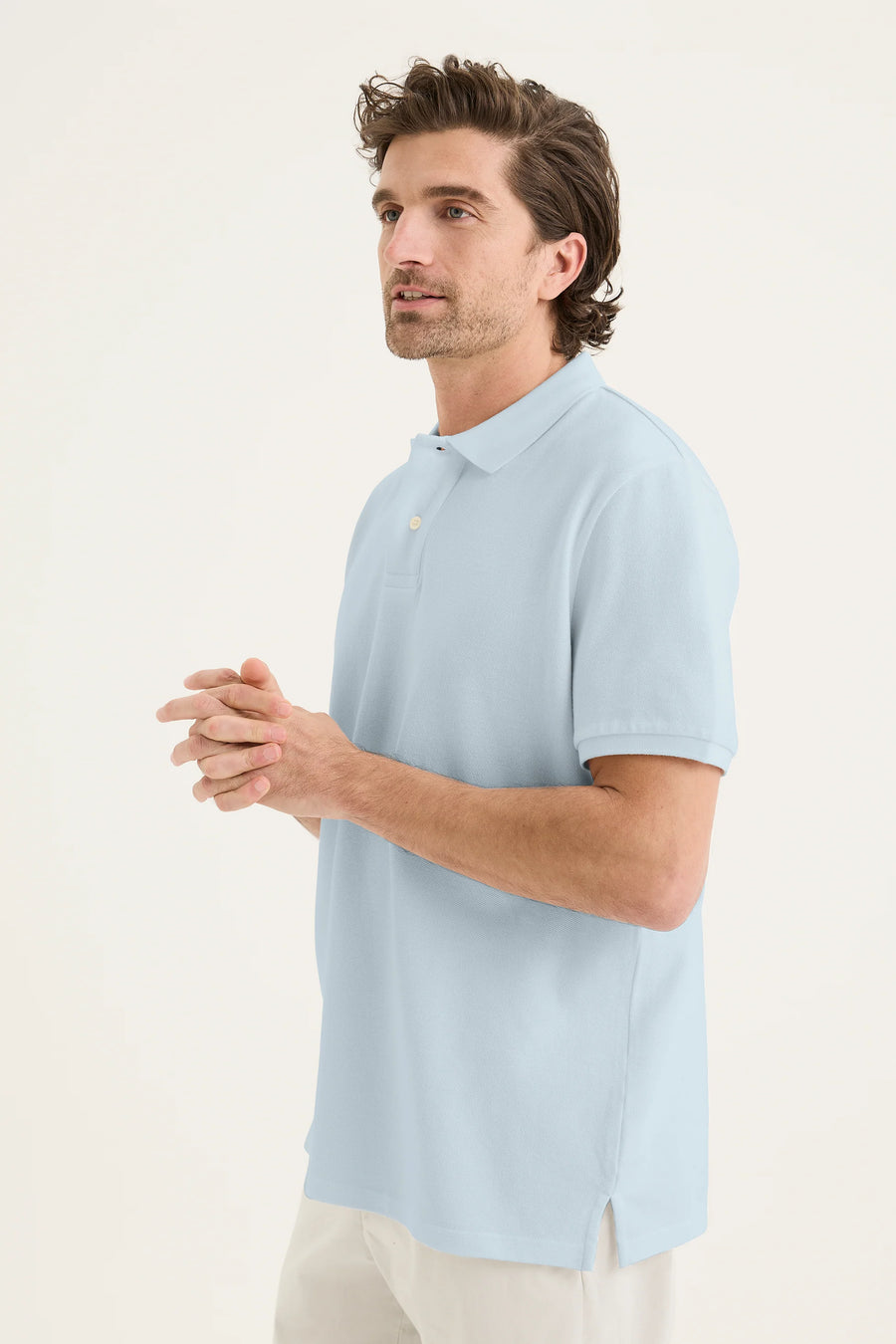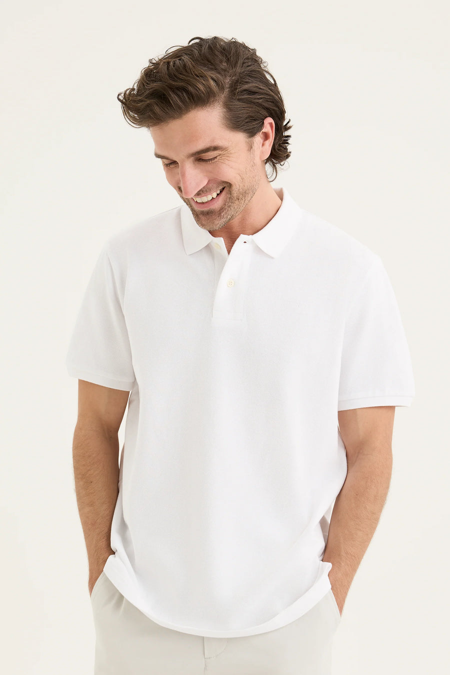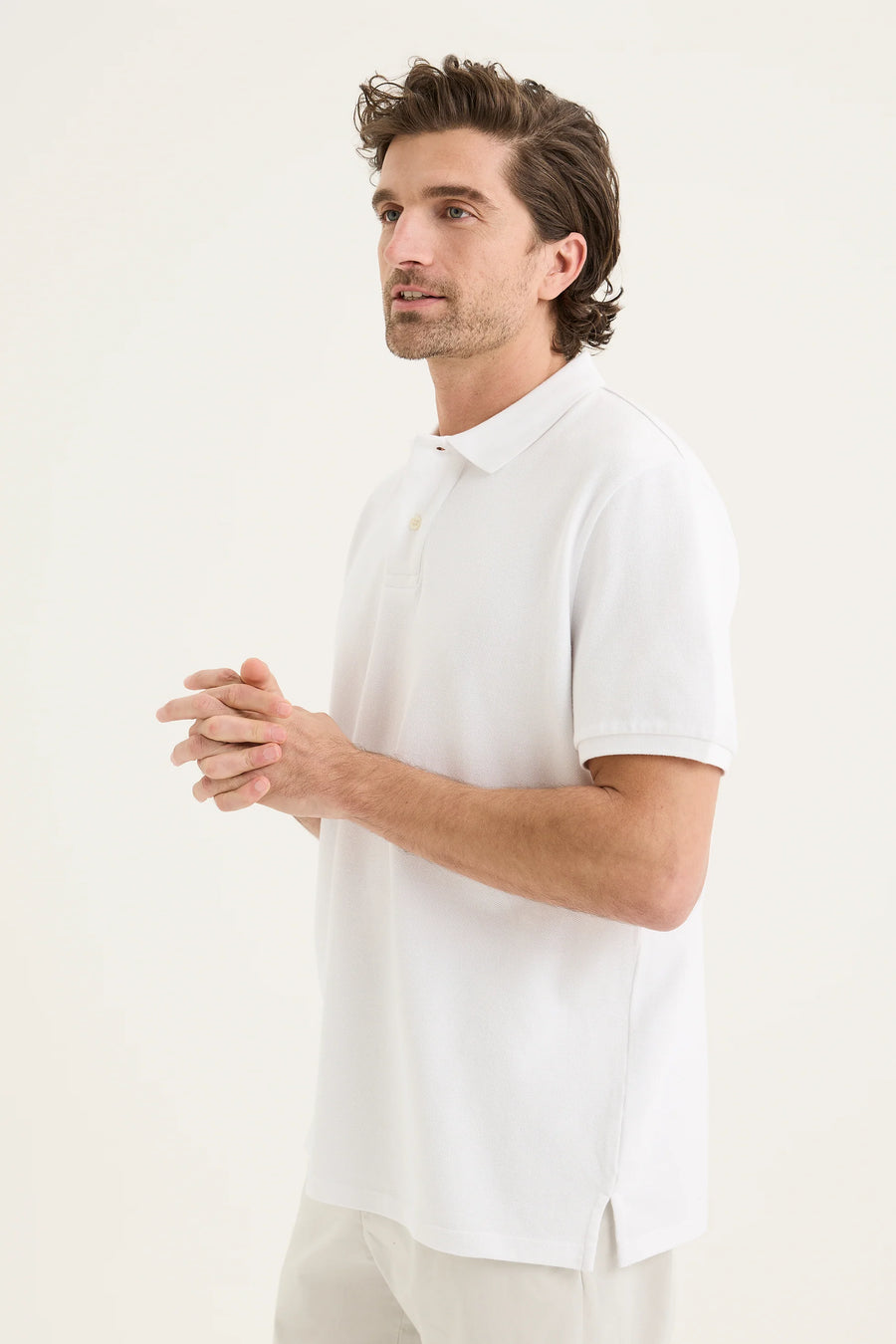 The Auburn Polo, crafted from breathable Cotton pique, it features a refined logo embroidery on the chest and a classic flat-knit polo collar. With short sleeves and a relaxed fit, it's a versatile summer staple.