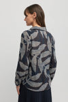 Cut from a soft viscose blend, the Naples Blouse brings a delicate touch to everyday dressing. Showcasing an exclusive abstract leaf print in grey and black tones, it features a classic collar, gently gathered sleeves and elasticated cuffs for soft shape through the arm. Polished yet versatile, it transitions seamlessly from office styling with tailored pants to relaxed weekend wear with denim or skirts.